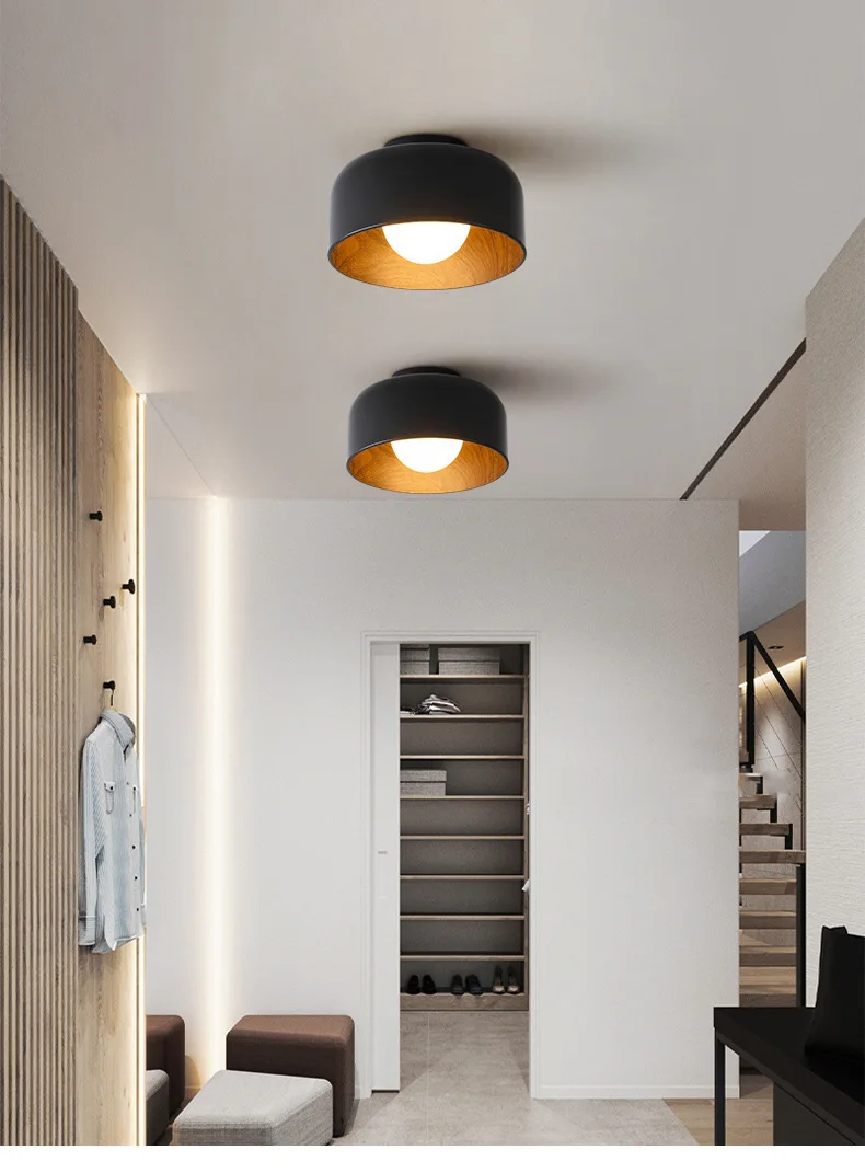 Elor ceiling light, made of metal, with black or white exterior finish and wood-coloured interior, adding a warm and inviting touch to the lighting. Its clean design enhances various environments, such as corridors, living rooms, bedrooms and gourmet areas, providing pleasant and well-distributed light.